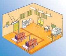 單臺(tái)40-200KW6缸機(jī)機(jī)房 |